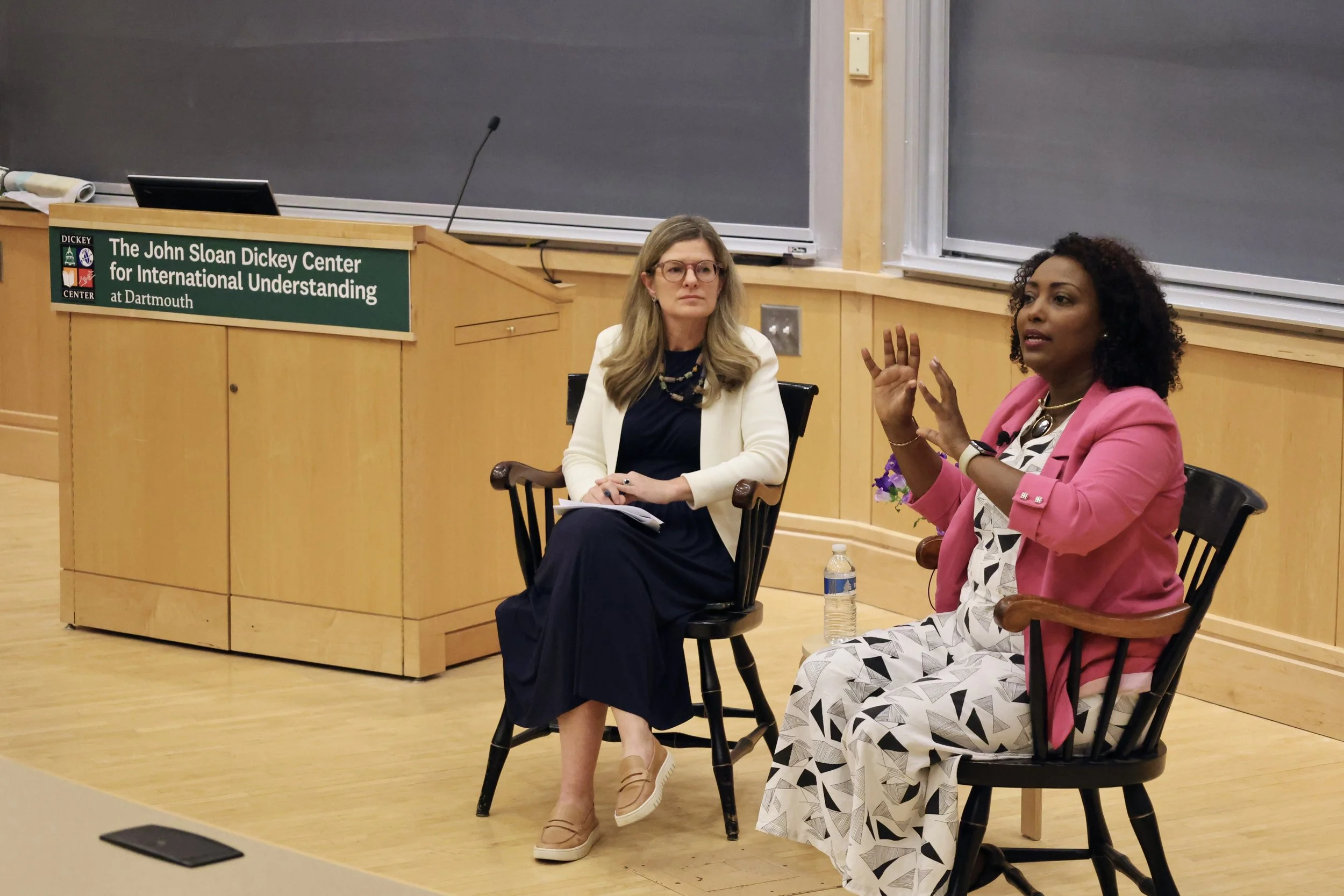 Sudanese human rights activist, Rania Aziz in conversation with Dickey staff member Lizzy Shackelford