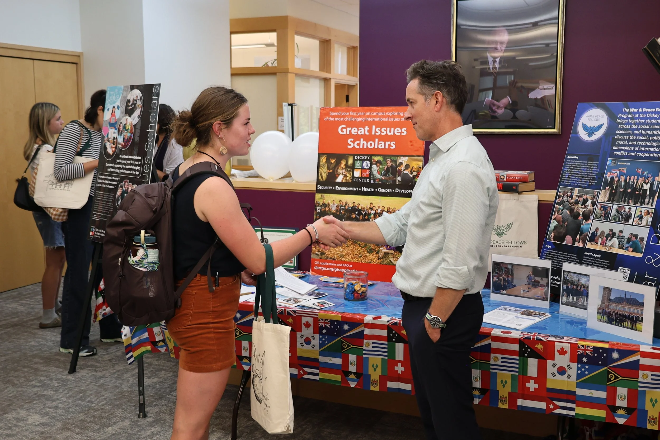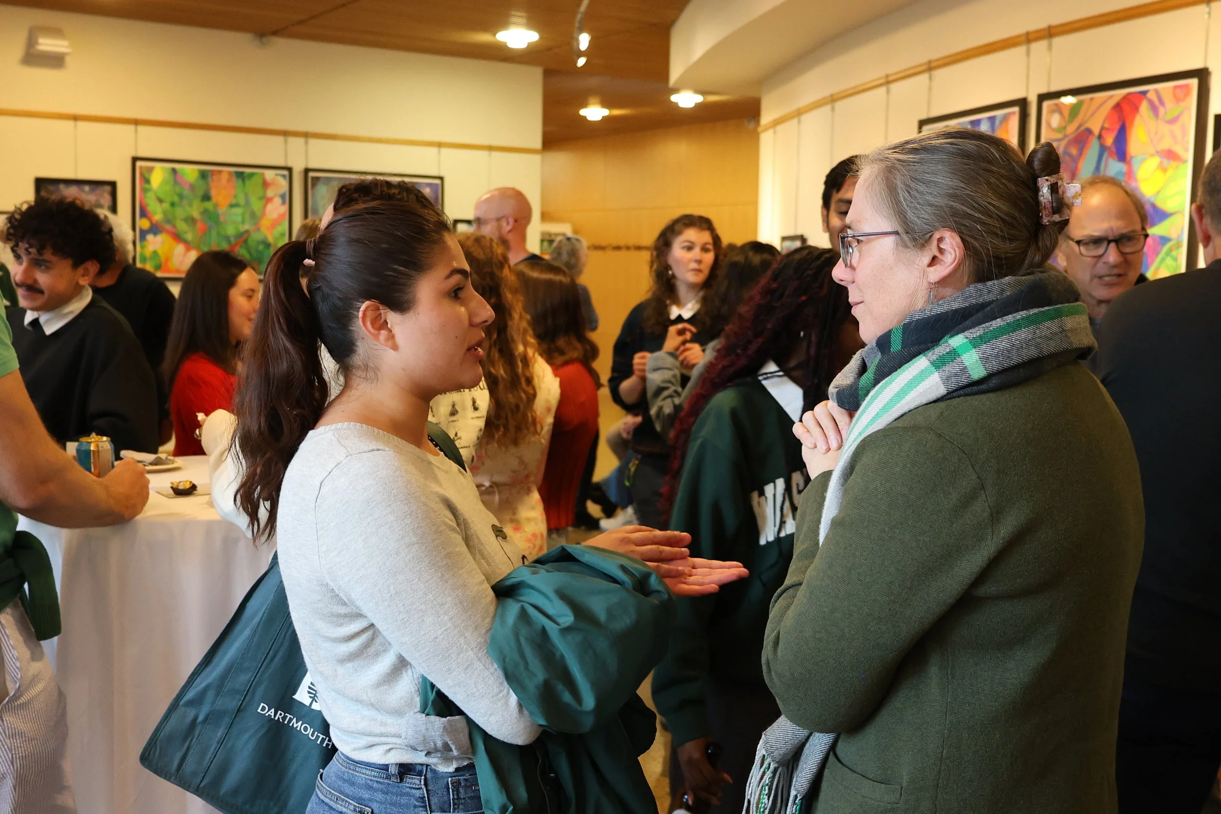 Students speaking about Dickey Center's new Dialogue Fellows program, a collaboration with Seeds of Peace, at fall Homecoming reception