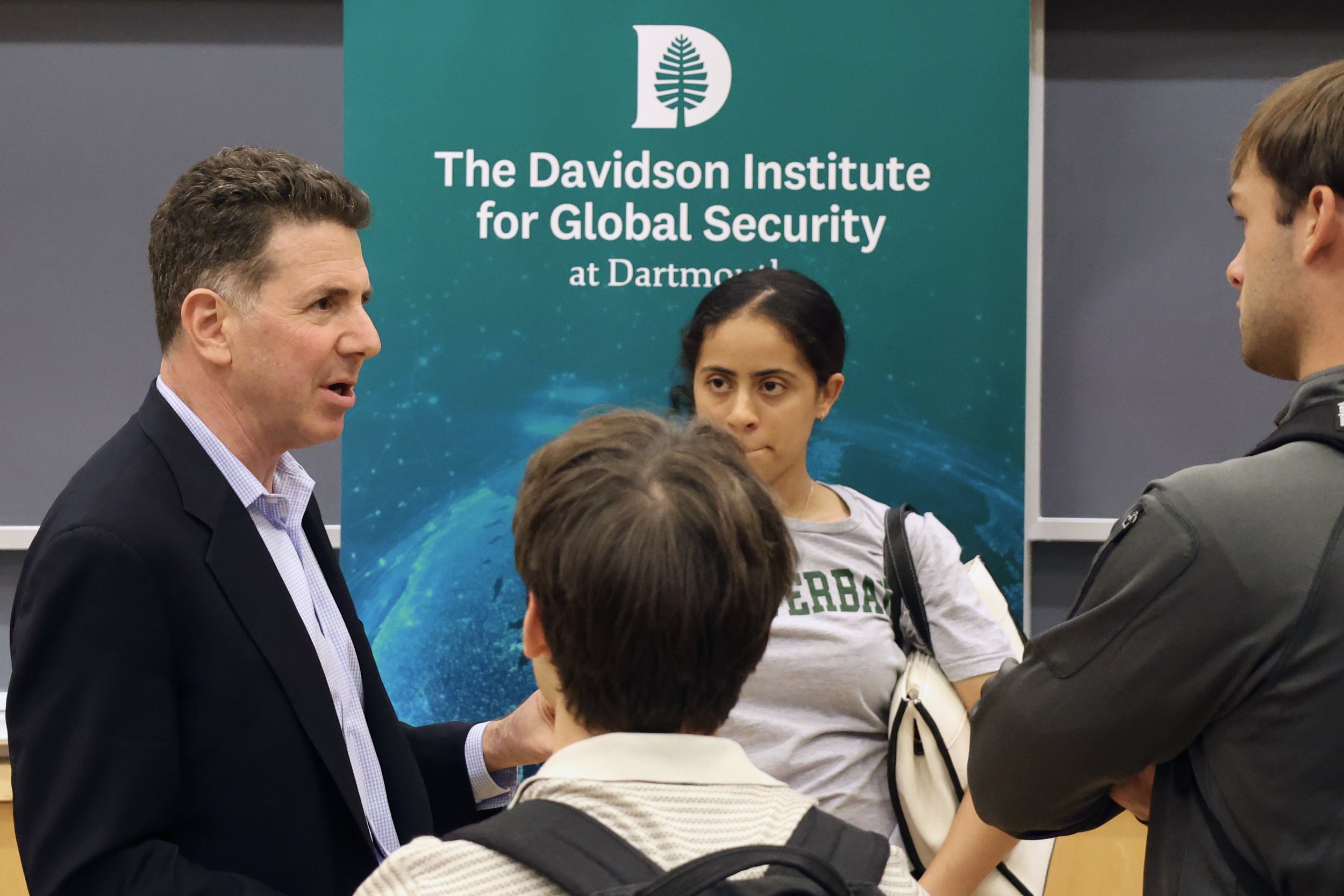 Visiting scholar and political scientist, Dan Byman speaking with students after public event