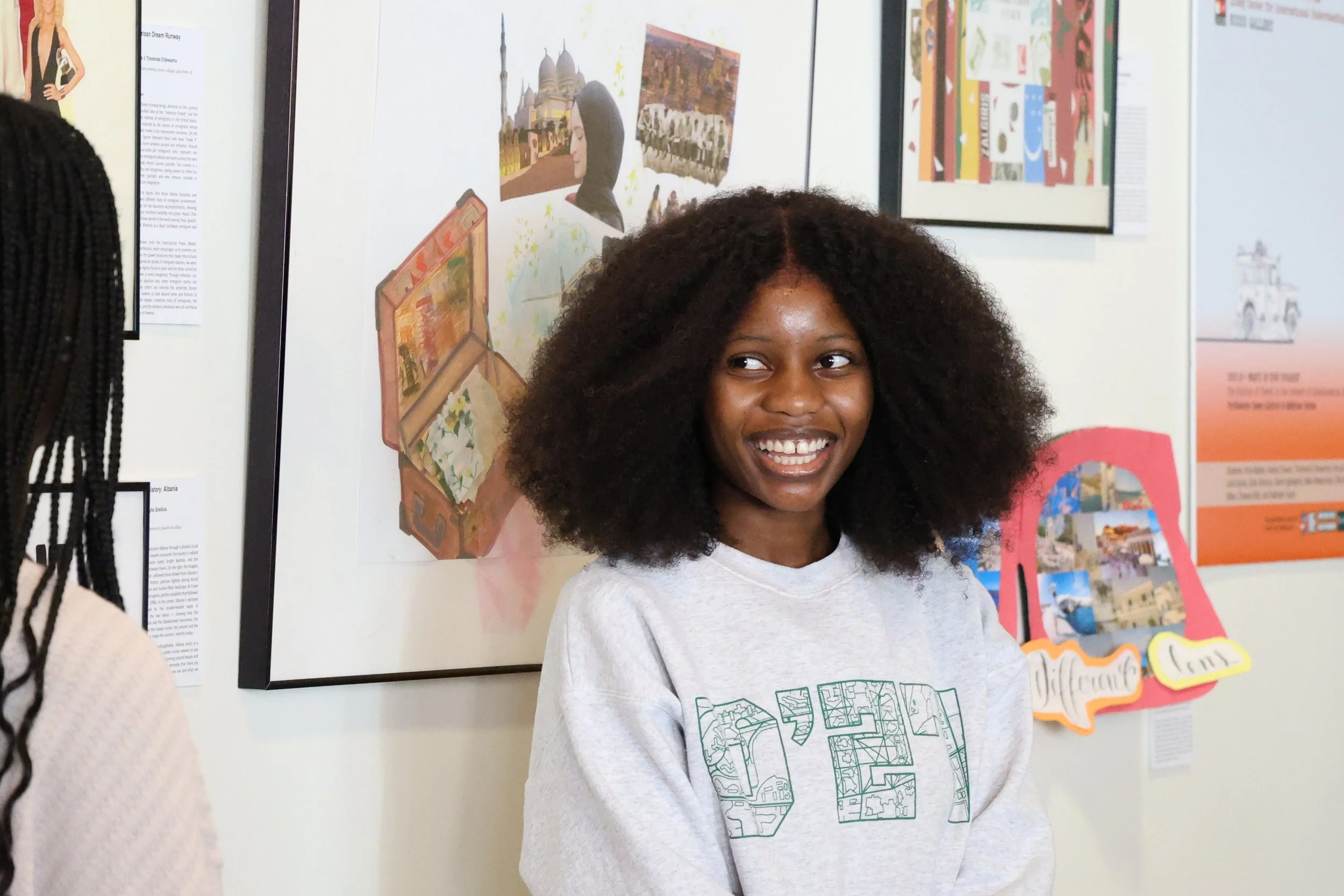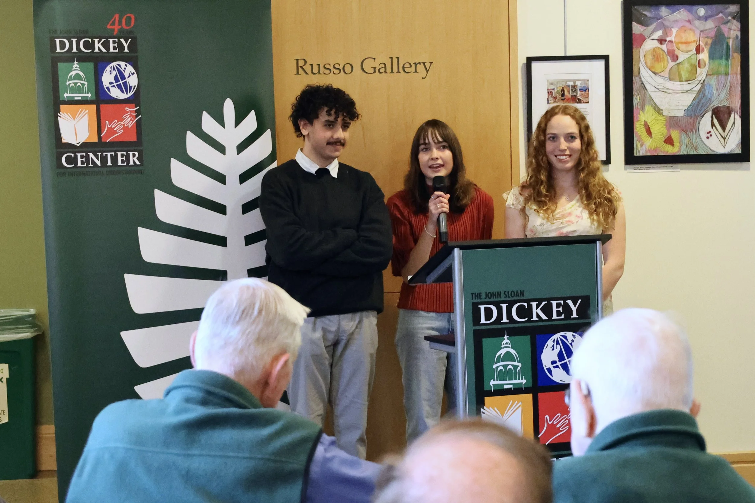 Student giving presentation at The Dickey Center's Russo Gallery winter opening