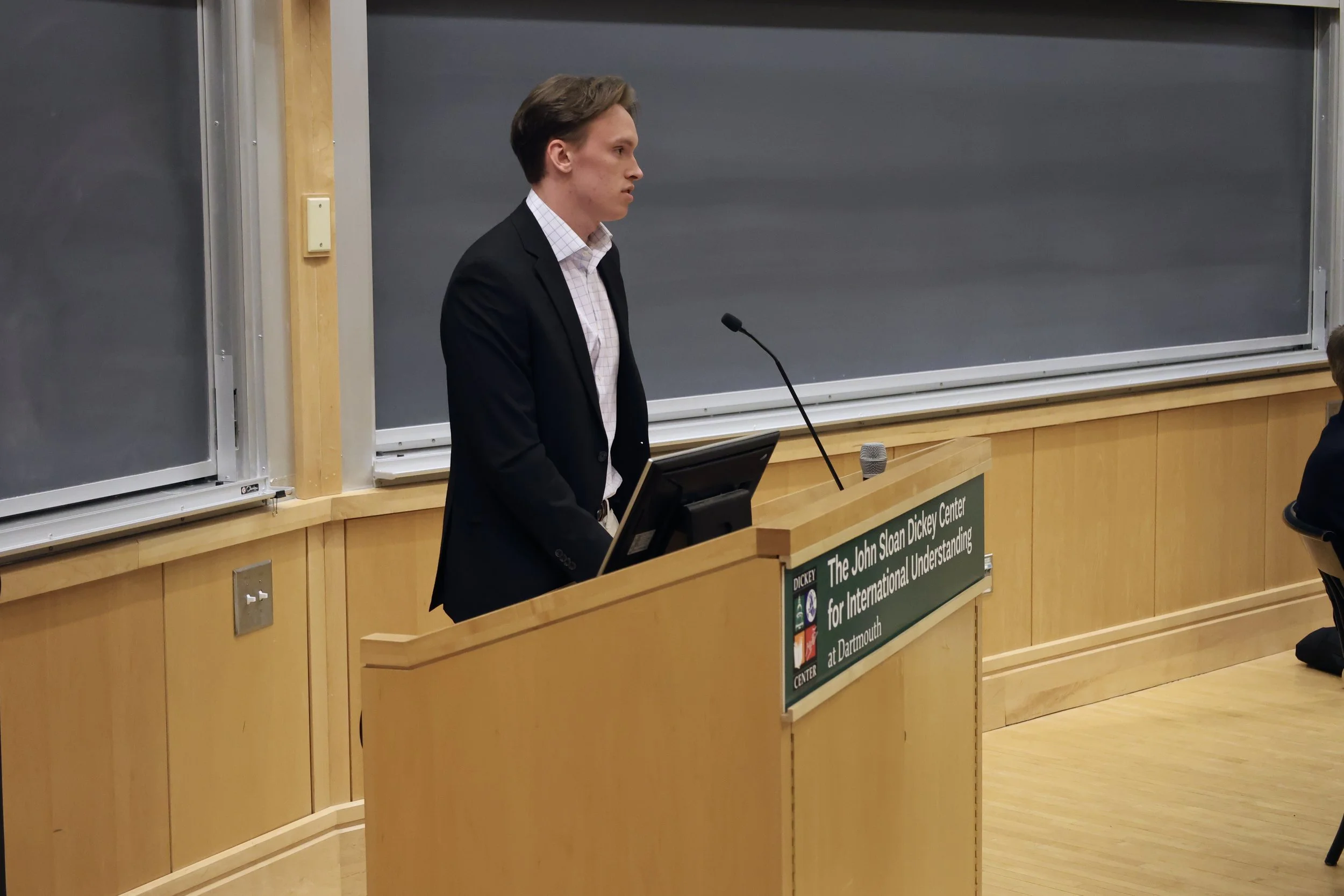 Dartmouth student gives introduction before Dickey Center public event